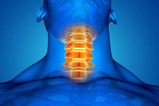 Approach: Focused on the neck vertebrae (cervical spine).