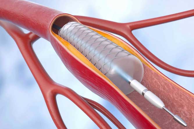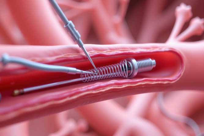 Stents are frequently used alongside coronary angioplasty to maintain openness in narrowed coronary arteries. A stent is a small, wire-mesh tube that acts as a scaffold, preventing the artery from collapsing after it has been widened. Some stents, known as drug-eluting stents (DES), are coated with medication that gradually releases to help prevent the artery from re-narrowing. In contrast, stents without a medication coating are referred to as bare metal stents (BMS).